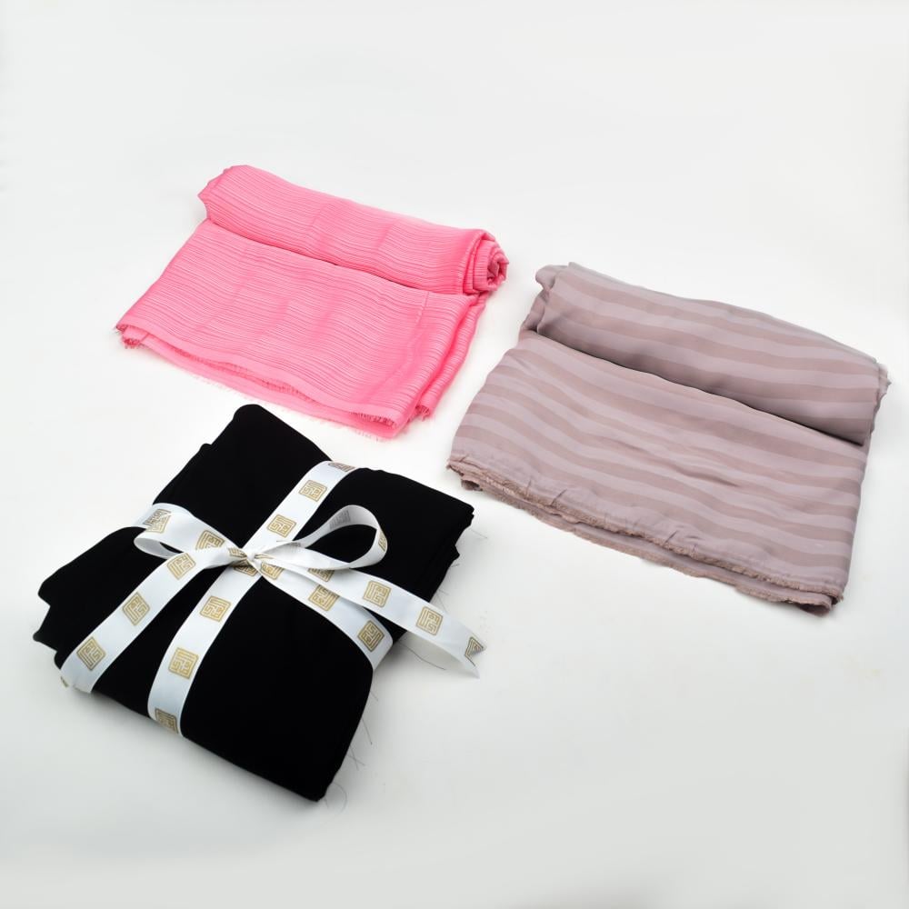 قماش حرير مغسول مقلم + قماش شيفون مقلم + هدية قطعة قماش كريب نواعم
