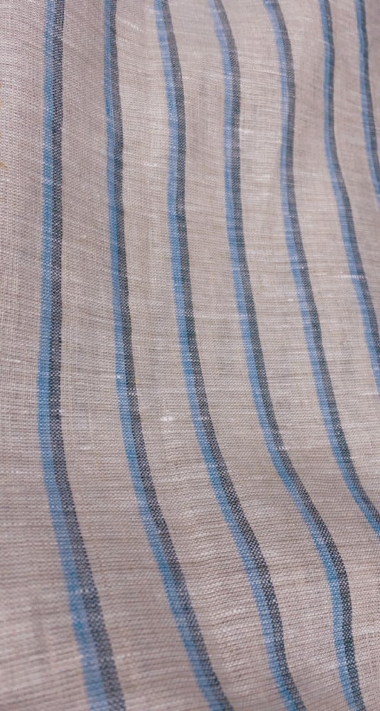 قماش كتان لينين المقلم بتقليمات جدا انيقة وجميلة، يتميز بتقليمة مميزة لمحبي التصميم الراقي والهادئ،، يعتبر من الصناعات الهندية، بخيوطها المتداخلة التي تعطي مظهرا جميل في الارتداء، قماش ساتر للجسم(غير شفاف) وبارد عالجسم، مناسب للعبايات والجلابيات والعديد من الاستخدامات.